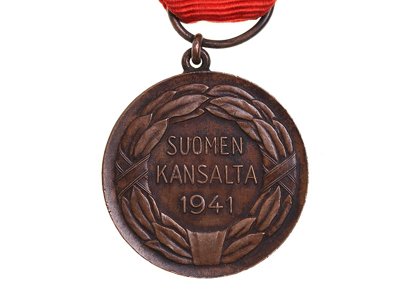 Медаль Креста Свободы за заслуги 2-го класса на оригинальной шелковой ленте. Бронза. Выпуск 1941 года.