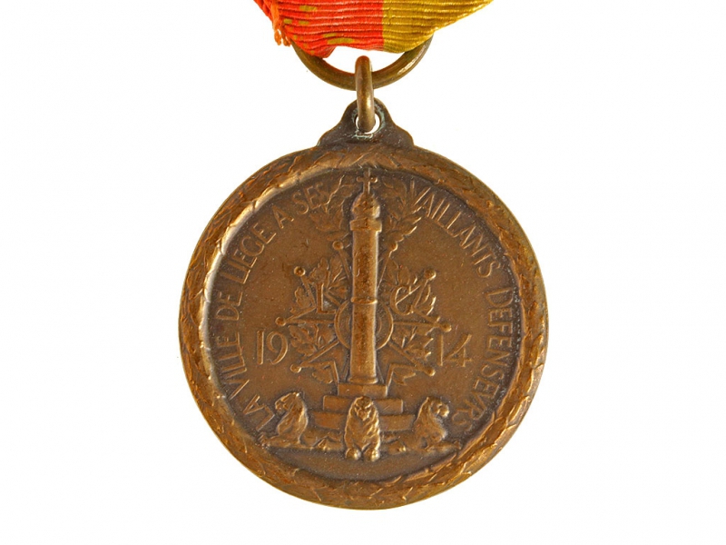 Медаль для Льежских добровольцев 1914 года. Бронза, на оригинальной шелковой ленте. Очень хорошее состояние.