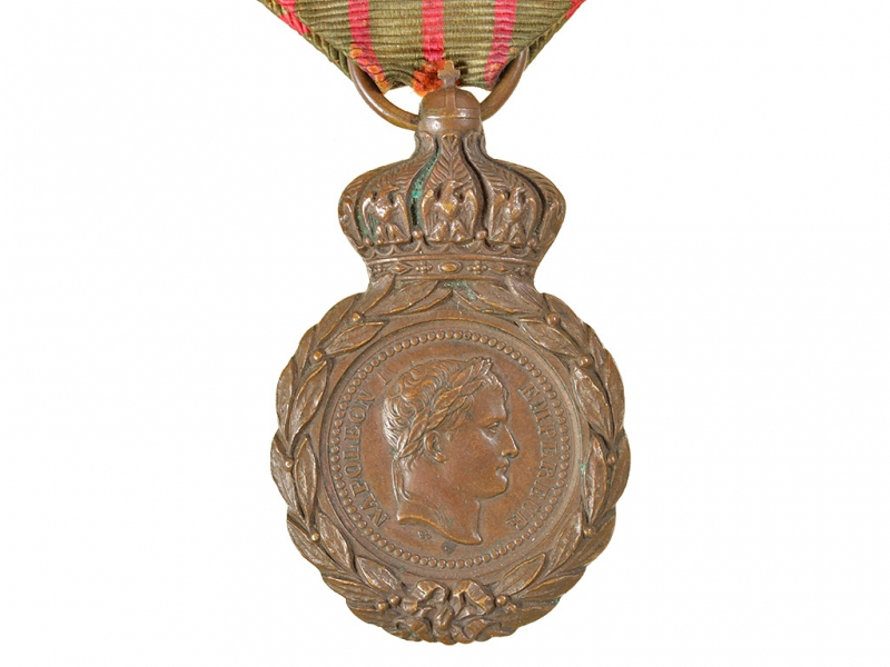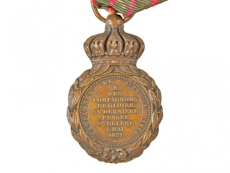 Юбилейная медаль с изображением Наполеона 1821 года. Бронза, на оригинальной шелковой ленте. Очень хорошее состояние.