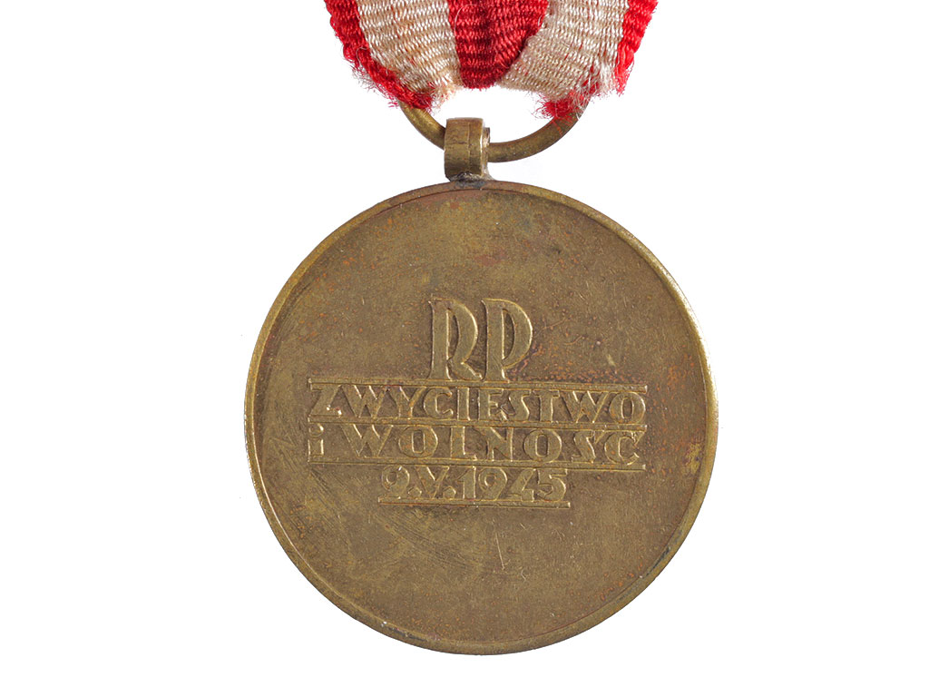 На оборотной стороне медали сделана надпись в четыре строки: «RP / ZWYCIESTWO / I WOLNOSC / 9.V.1945». Надписи подчеркнуты узкой чертой.