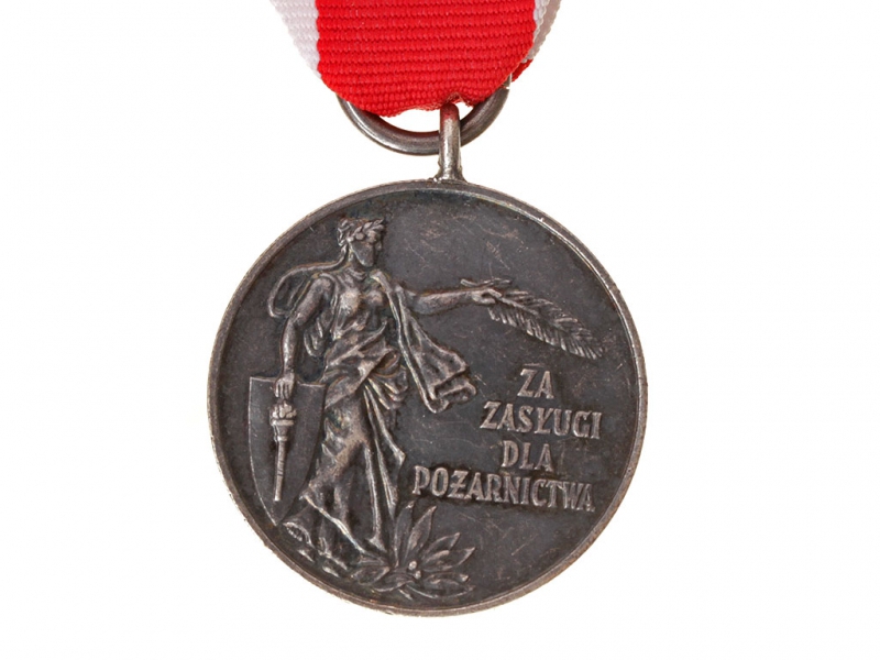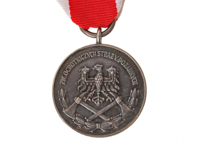 Медаль "За заслуги" 2 степени для пожарных периода Польской Народной Республики. Томпак, серебрение, на оригинальной колодке.