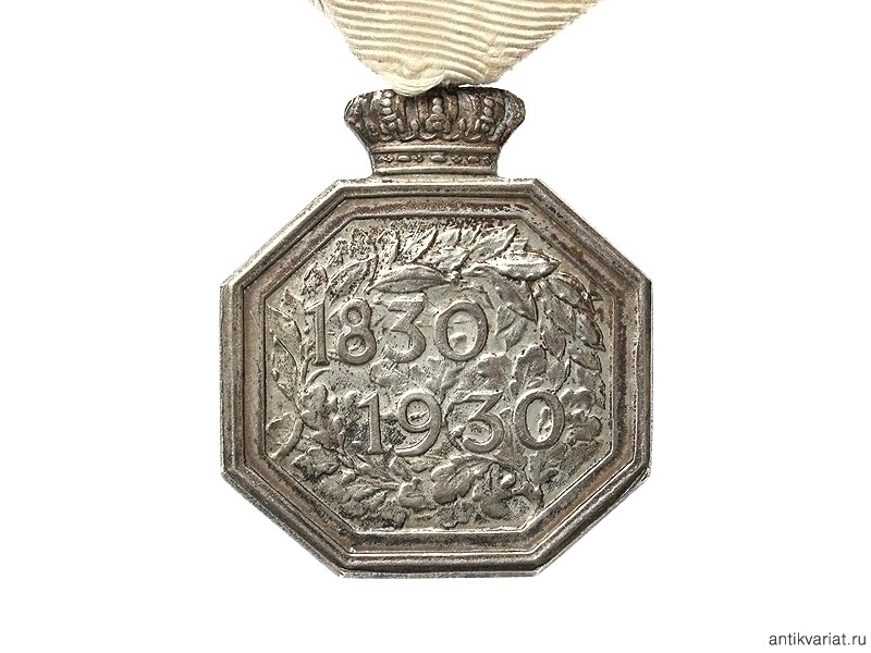 Медаль в память 100-летия бельгийской революции. Серебро, на оригинальной шелковой ленте.