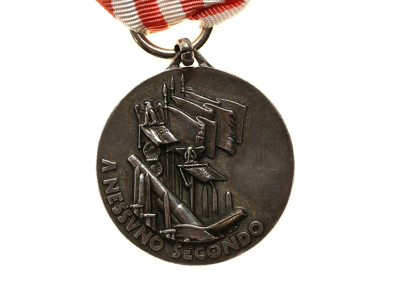 Медаль "Бои в Альпах", 1940 год. С изображением военной арматуры и девизом "Никто второй". Серебро, на оригинальной ленте.