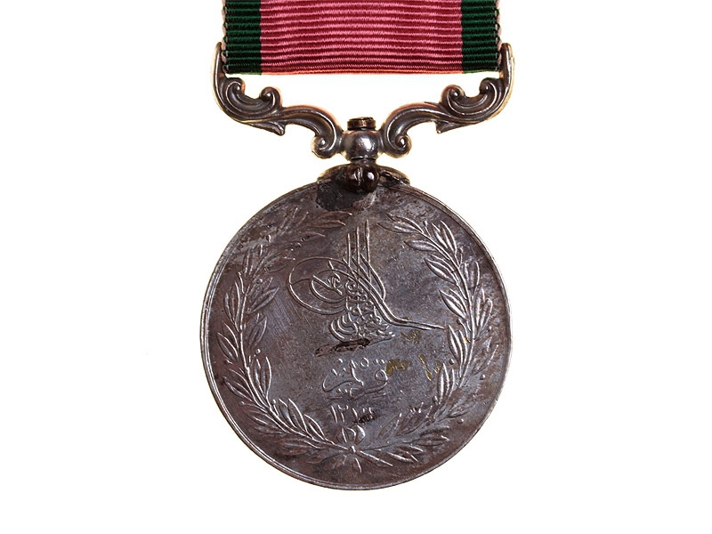Османский султан Абдул-Меджид I (1839-1861) 21 февраля 1856 года объявил о своём намерении выпустить медаль для награждения военнослужащих союзных армий – британской, французской и сардинской, принимавших участие в Крымской войне. Медали были одного типа, но различались деталями, зависевшими от подданства награждённых. На реверсе, в центре, рядом с османским флагом помещалось изображение флага того государства, чьим подданным был награждённый (в представленном случае - Сардинии). Надпись в экзерге также исполнялась на соответствующем языке. Первоначально планировалось изготовить 3000 медалей для награждения офицеров британских частей и 50 000 медалей для солдат и матросов (впоследствии общее число заказанных наград выросло до 99 000, из них 74 000 предназначалось для армии и 15 000 для флота). В январе 1859 г. англичанами была получена первая партия медалей в количестве 47 000 экз. Следующую партию из 22 000 медалей должно было доставить в Англию судно «Помона», но оно затонуло в марте 1860 г. Последняя партия из 18 000 медалей прибыла в Лондон в августе того же года, после чего поставки прекратились. В результате утраты значительной части наград на «Помоне» многие англичане получили медали за Крымскую войну французского или сардинского образца.