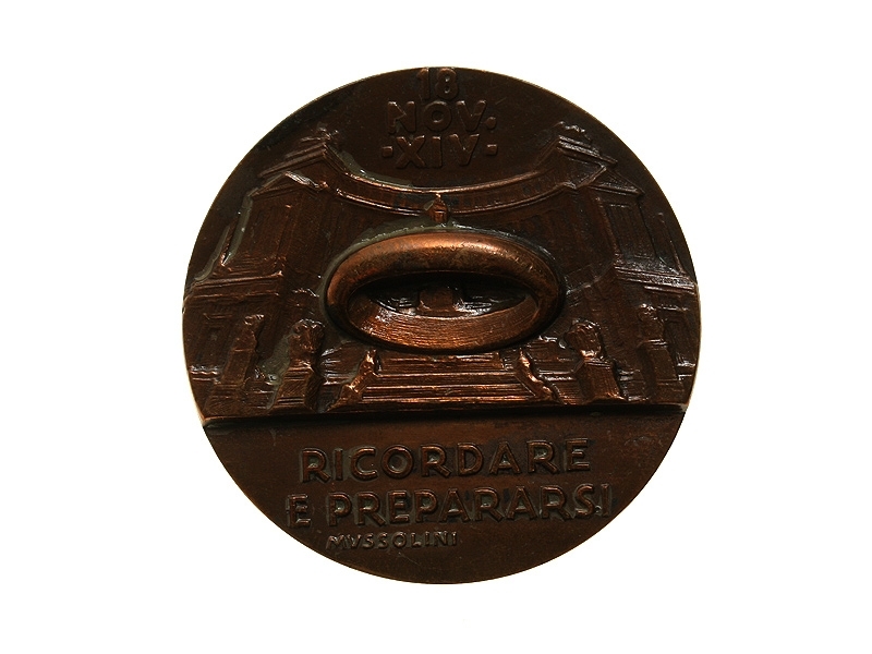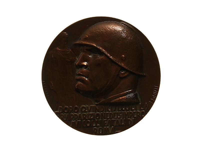 Настольная медаль с портретом Муссолини и девизом "Помни и готовься". Бронза, очень хорошее состояние.
