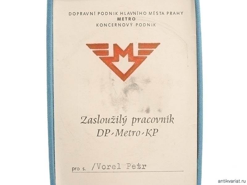 Медаль "Заслуженный работник метро" с документом, Чехословакия