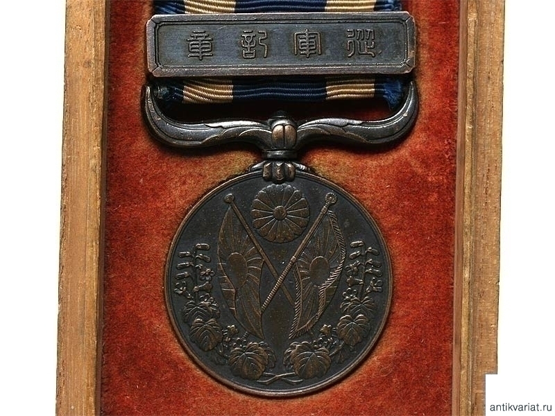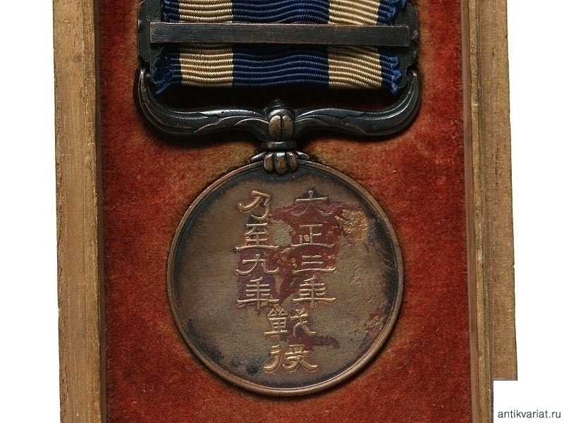 Медаль участника боевых действий на Дальнем Востоке. 1910-е годы. Бронза, в оригинальном деревянном футляре.