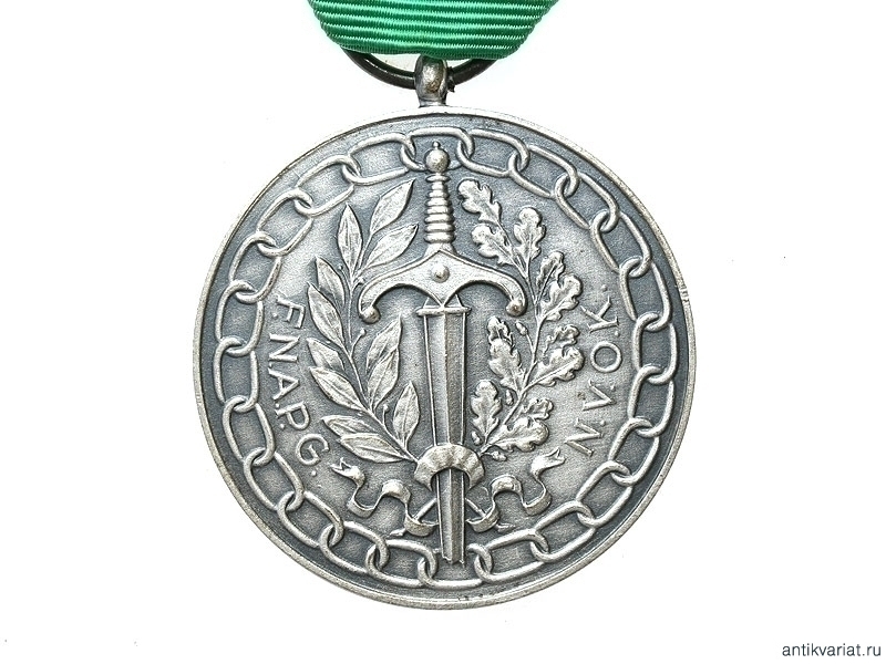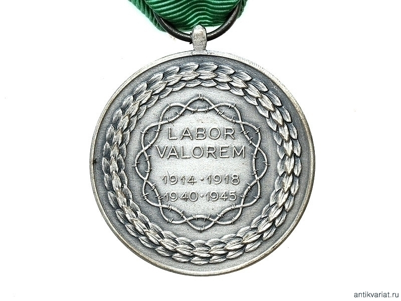 Медаль участника Первой и Второй мировых войн на оригинальной шелковой ленточке. Белый металл.
