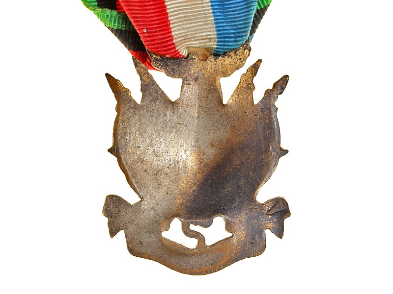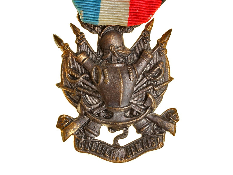 Бронзовая медаль ветерана кампании 1870 - 1871 годов на оригинальной ленте. На лицевой стороне - изображение трофейного оружия, под которым на ленте помещен девиз "OUBLIER…JAMAIS!" (Никогда не забывайте!).