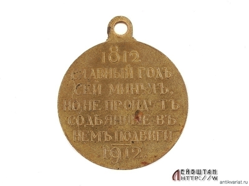 Медаль в память 100-летия Отечественной войны 1812 года. Бронза. 1912 год. Очень хорошее состояние.