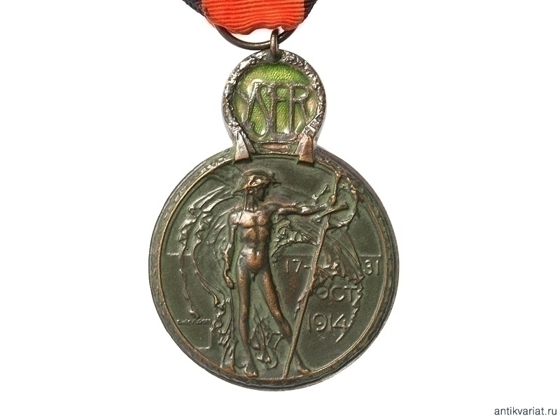 Памятная медаль за участие в битве при Изере в 1914 году. Бронза, эмаль, патинирование. На шелковой ленте.