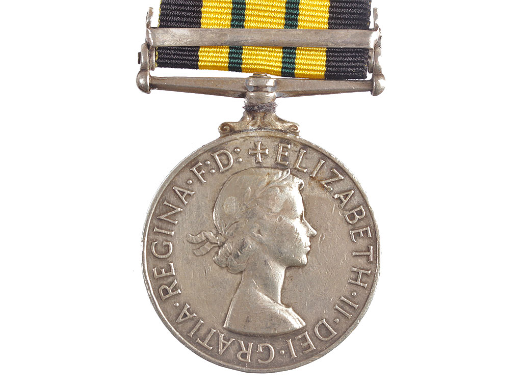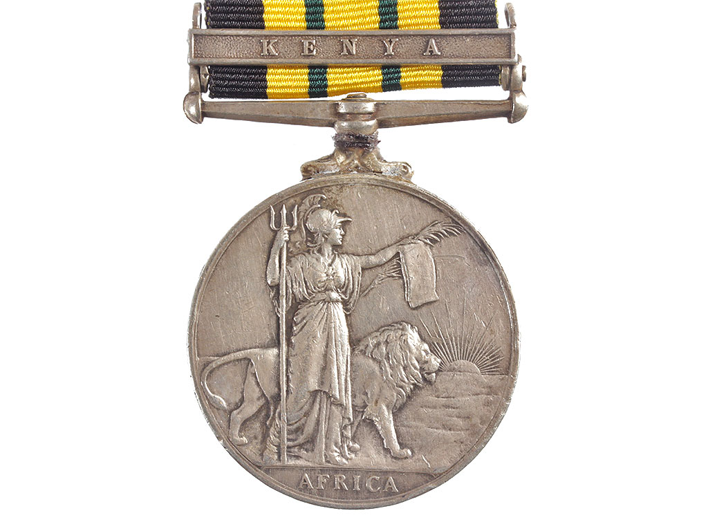 Медаль за службу в Африке (Africa General Service Medal) в 1952 - 1956 годах с планкой "KENYA" на колодке. Серебро.