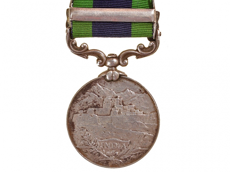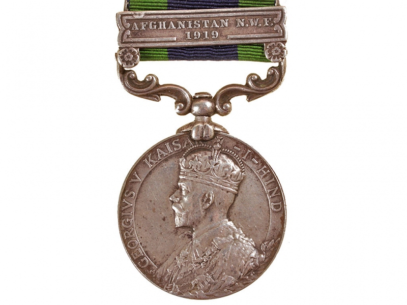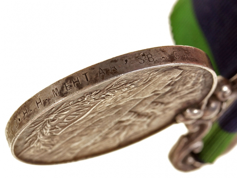 Медаль за службу в Индии с планкой за прохождение службы в Афганистане в 1919 году. Серебро, на оригинальной ленте, с гравированными данными награжденного на гурте.