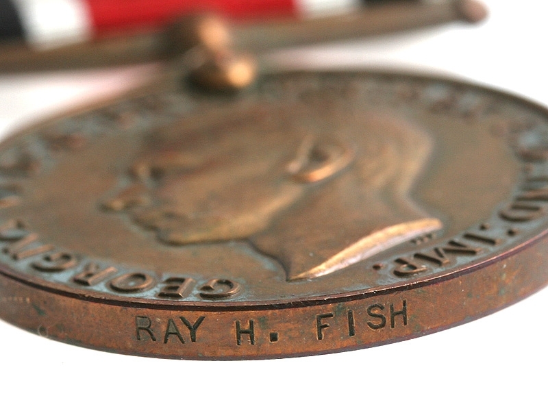 Медаль за службу в полиции периода Второй мировой войны. Бронза, на оригинальной ленте. С фамилией награжденного на гурте "Ray H.Fish".