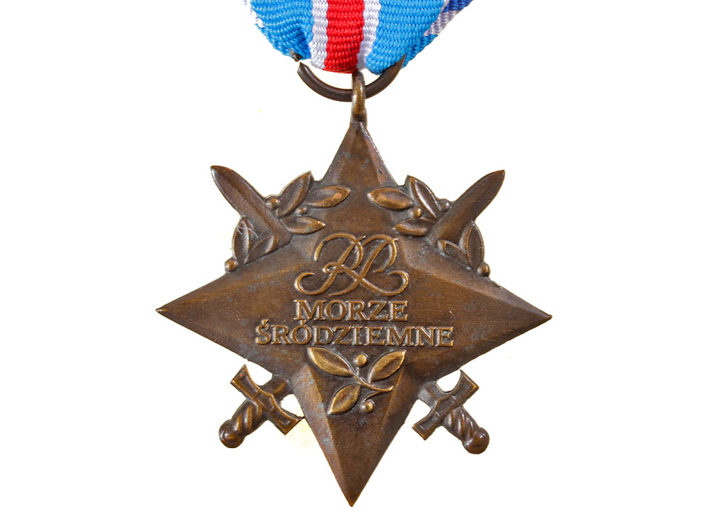Награда за службу в польских миротворческих силах в Средиземноморье (Gwiazda "Morze Srodziemne"). Томпак, на оригинальной ленте.