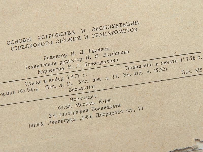 |Методическое пособие "Основы устройства и эксплуатации стрелкового оружия и гранатометов", СССР