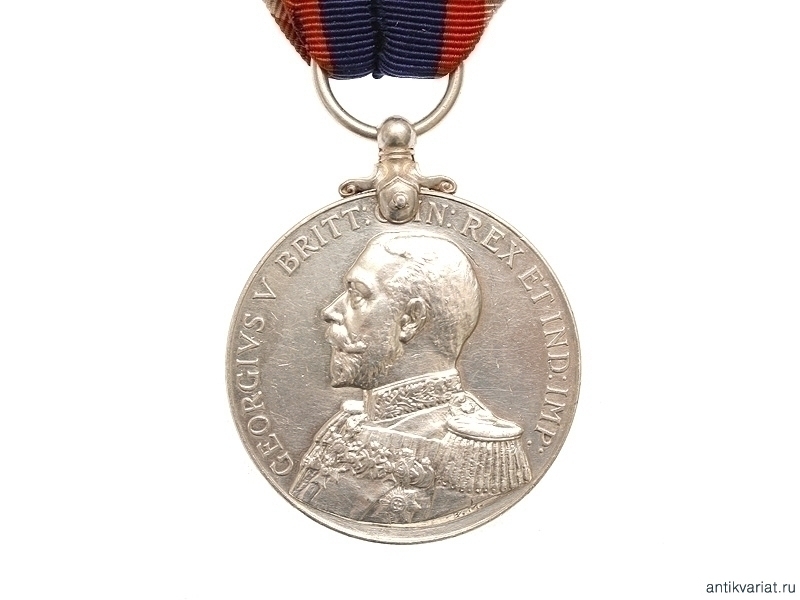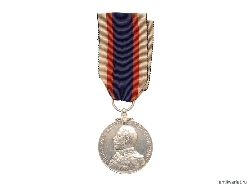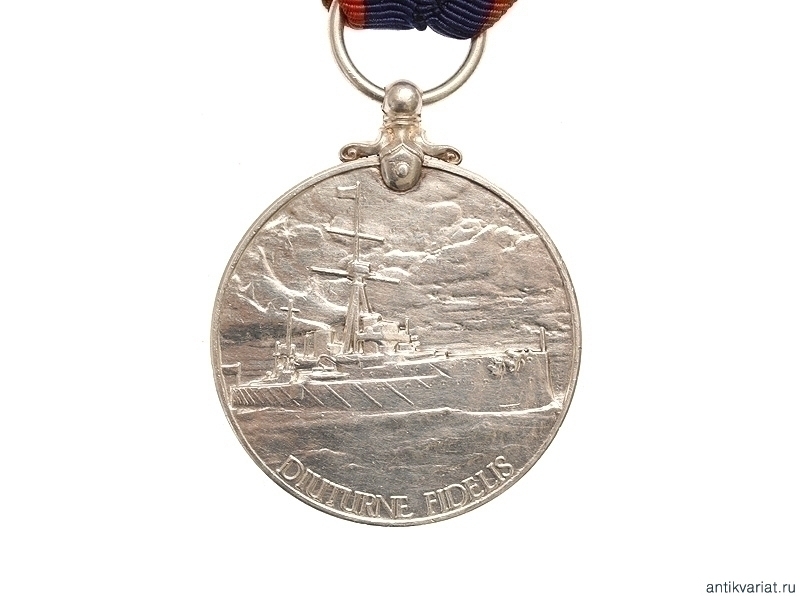 Наградная медаль Британской армии "За доблестную службу на флоте" периода Первой Мировой войны (с изображением на реверсе линкора). Учреждена королем Великобритании из династии Виндзоров Георгом V, правившим в 1910-1936 гг.
