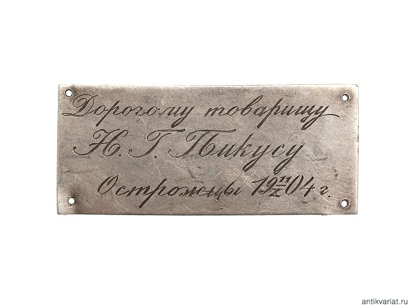 "Дорогой товарищ" - исконно русское обращение, в начале прошлого века было весьма почетным. Полковые Чины 167-го пехотного Острожского полка могли приподнести подарок унтер-офицеру или полковому врачу некому Н.Н. Пикусу, например, кабуру от пистолета или шкатулку, на которой крепилась накладка, тем самым высказывая ему свое уважение.