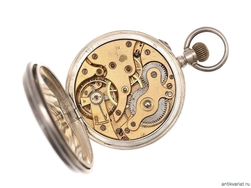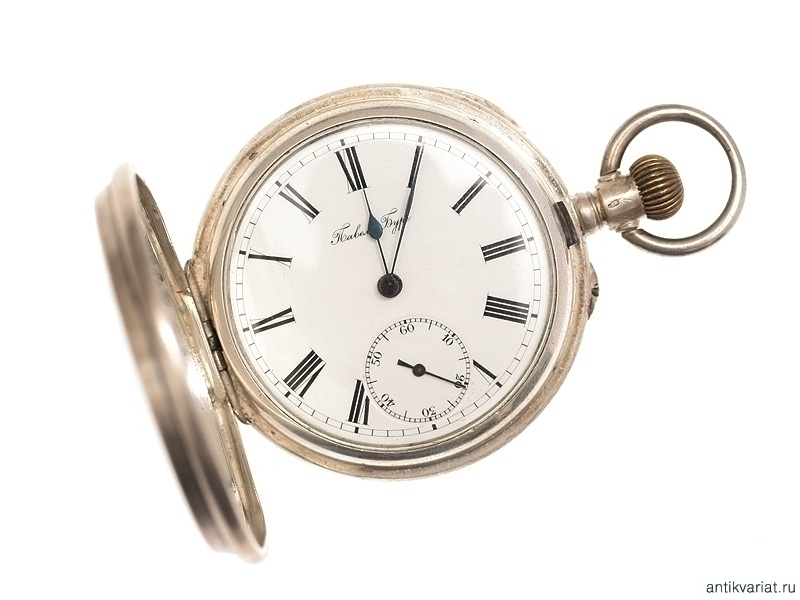 Наградные карманные трехкрышечные часы в серебряном корпусе с рельефным изображением на верхней крышке скачущего гусара. Изготовлены фирмой "Павелъ Буре". Механизм на ходу, корпус в очень хорошем состоянии.
