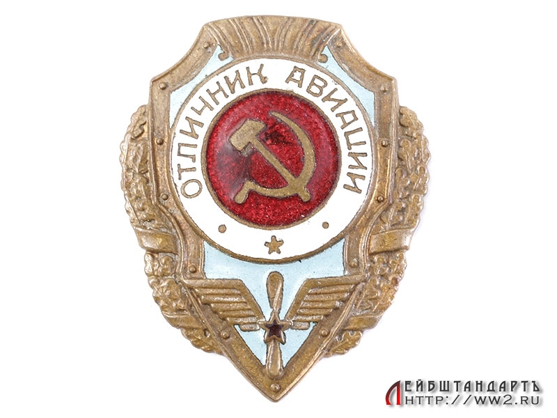 Нагрудный знак "Отличник авиации". Изготовлен из бронзы, эмаль отлично сохранилась, имеются следы оригинального золочения.