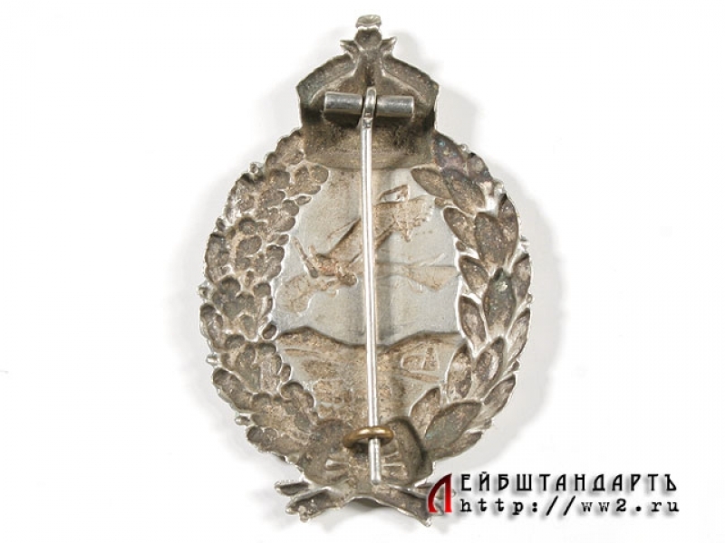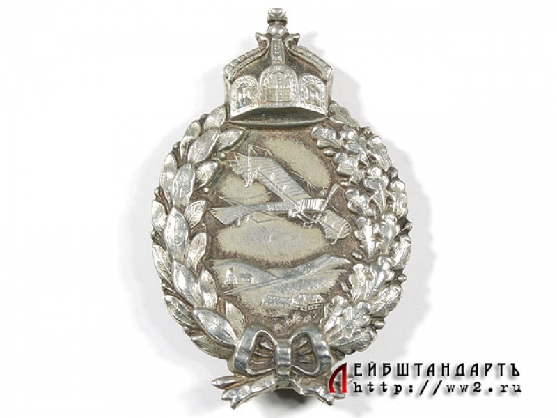 Нагрудный знак военного летчика времен Первой мировой войны в превосходной сохранности. Очень красивый знак, изготовленный из мельхиора, на заколке, без клейм. В венке под кайзеровской короной - рельефное изображение военного аэроплана. Встречается редко.