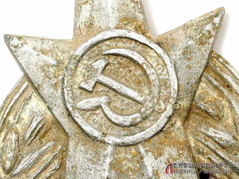 Навершие знамени выпуска 1930-х годов в хорошем состоянии. Изготовлено из алюминия, имеются незначительные следы коррозии.