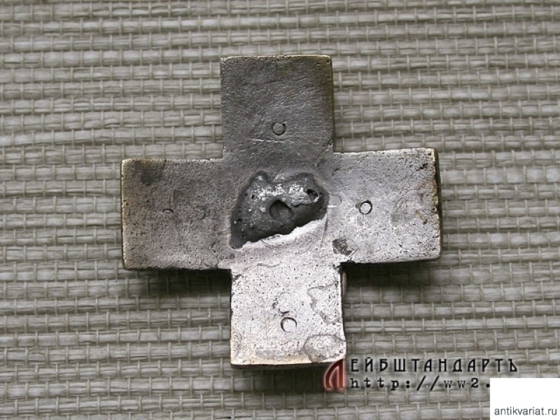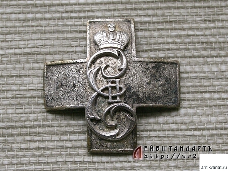Неатрибутированный солдатский полковой знак, изготовленный из посеребренной бронзы, с накладным вензелем Екатерины Второй. По внешнему виду напоминает нагрудный знак 34 пехотного Севского генерала графа Каменского полка, но на лицевой стороне отсутствуют две накладки, что затрудняет атрибуцию. Винт и закрутка отсутствуют. Знак имеет археологическое происхождение, этим и объясняется его плачевное состояние.
