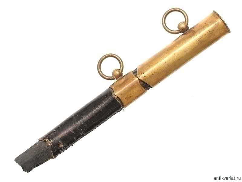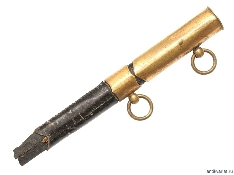 Ножны офицерского морского кортика начала ХХ века под четырехгранный клинок. Дерево, кожа, устье и гайка из бронзы с частично сохранившимся золочением. Наконечник отсутствует.
