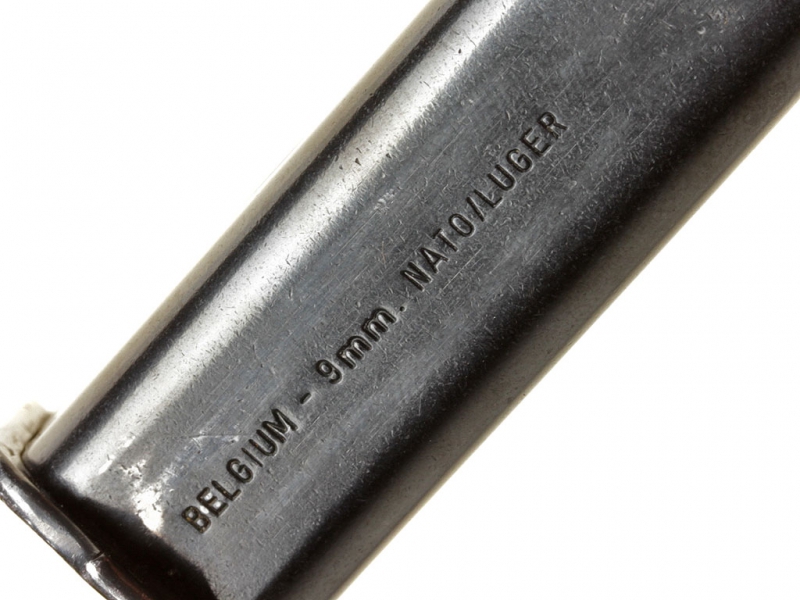 Магазин для пистолета "Браунинг Хай Пауэр" современного производства, с клеймом "BELGIUM - 9 mm. NATO / LUGER".