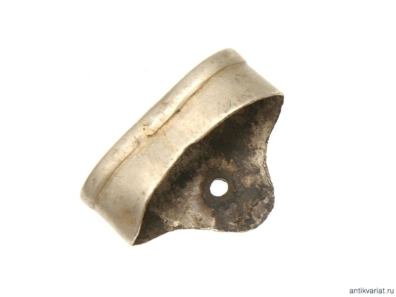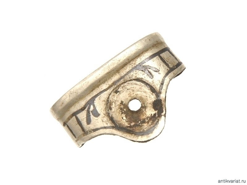 Нижняя обоймица рукояти кинжала Терского либо Кубанского казачьего войска. Мельхиор, украшена уставным орнаментом, нанесенным чернью. Начало ХХ века.