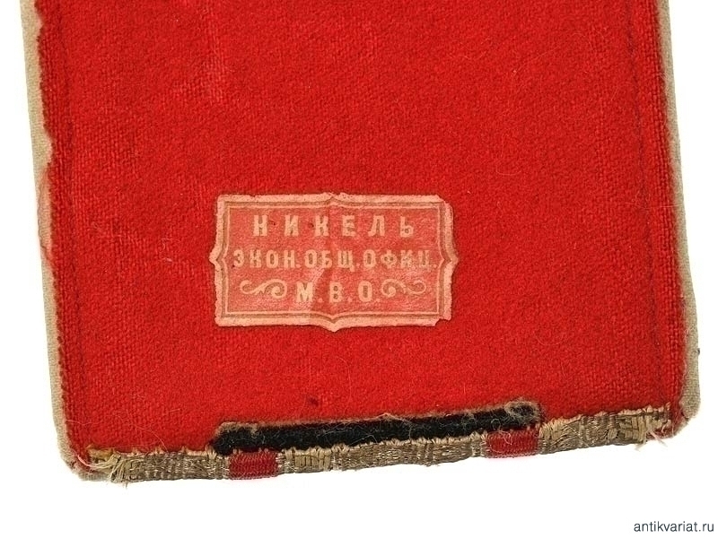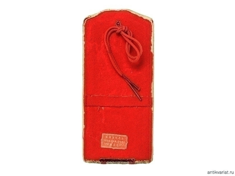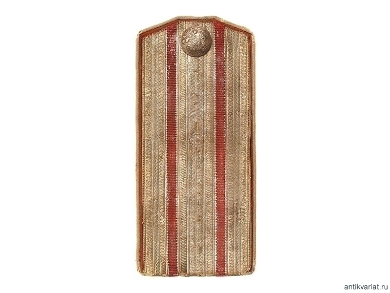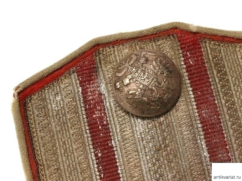 Одиночный пристяжной погон на мундир полковника лейб-гвардии Кавалергардского полка. Начало ХХ века. Серебристый галун с двумя красными просветами, белый кант. На красном подбое сохранилась бирка "Никель. Экон.Общ.Офиц. М.В.О.".