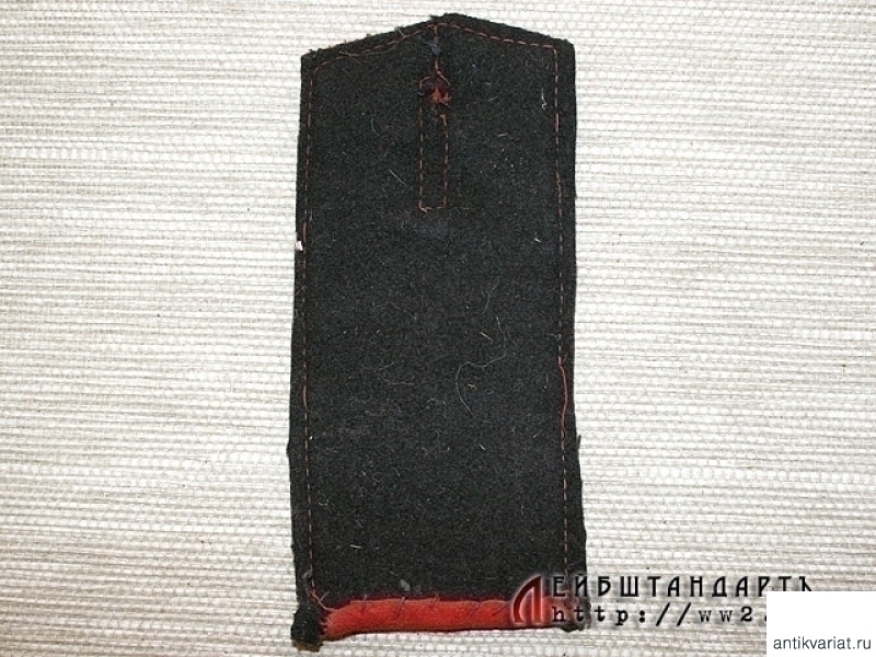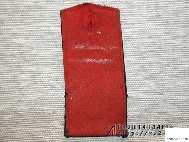 Одиночный погон рядового армейской (гвардейской?) артиллерии. Погон из красного сукна, сохранился след от подклеенных лычек. Изнанка подшита черным сукном. Хлястик отсутствует.