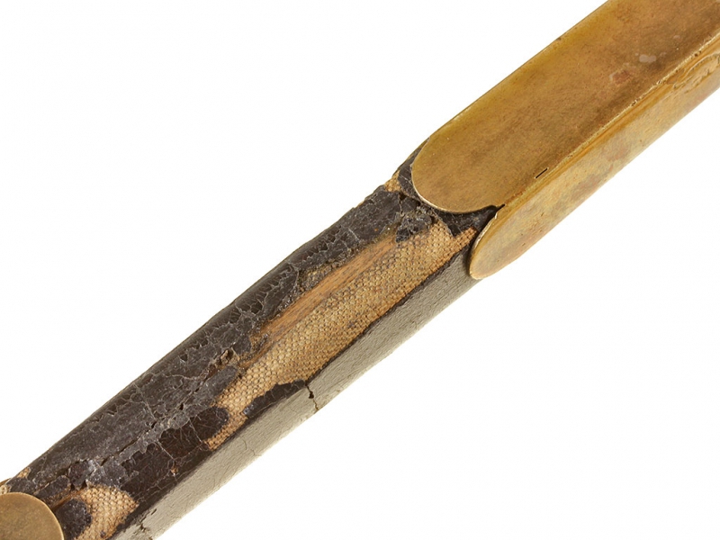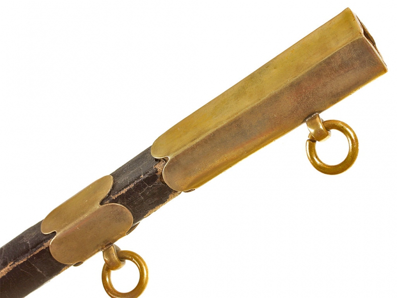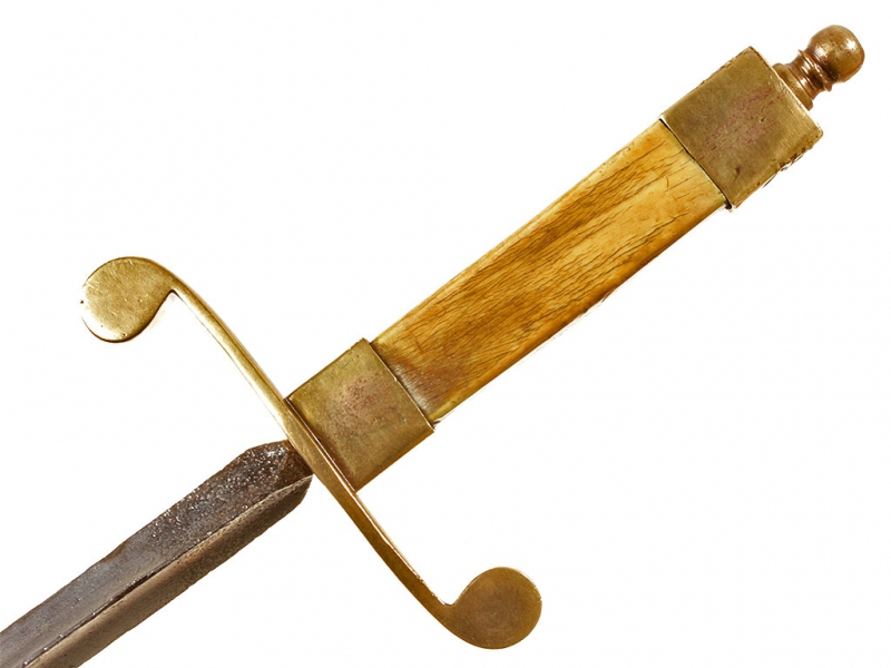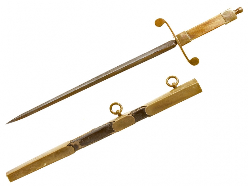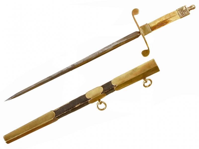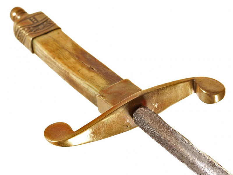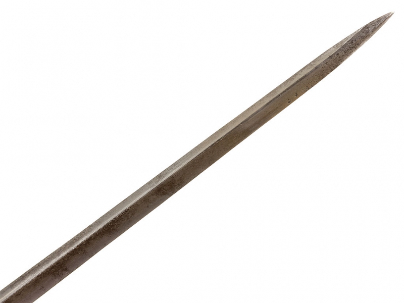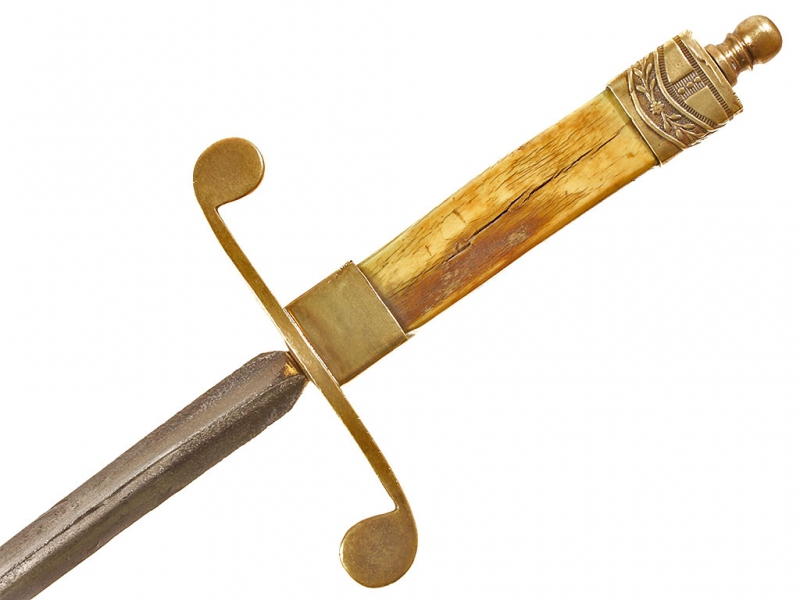 Кортик офицера либо военного чиновника, изготовленный в самый заключительный период Великой войны: с марта по октябрь 1917 года. Клинок четырехгранный, без клейм. Рукоять костяная, прибор латунный, без золочения. Навершие без вензеля Николая II, украшено произвольным орнаментом. Ножны деревянные, грунтованные, с латунным устьем, гайкой и наконечником.