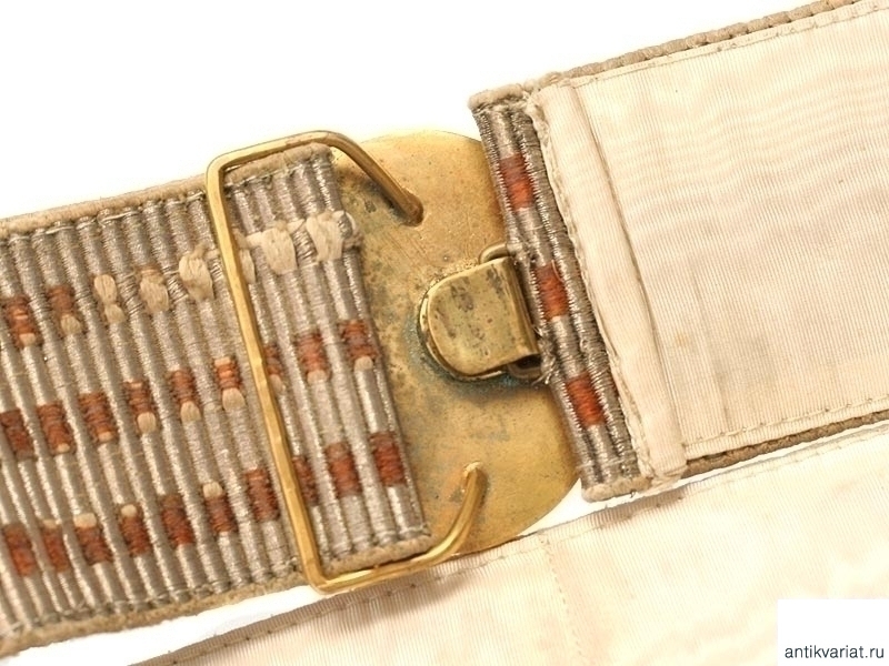 Пояс-шарф офицеров и адмиралов Российского Императорского военно-морского флота. Плетеный из металлизированной нити, пряжка латунная вызолоченная. Очень хорошее состояние.