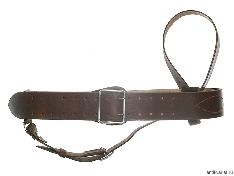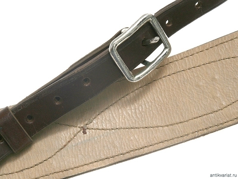 Кожаный офицерский ремень с портупеей выпуска 1945 года с рамочной никелированной двузубой пряжкой. Очень хорошее состояние.