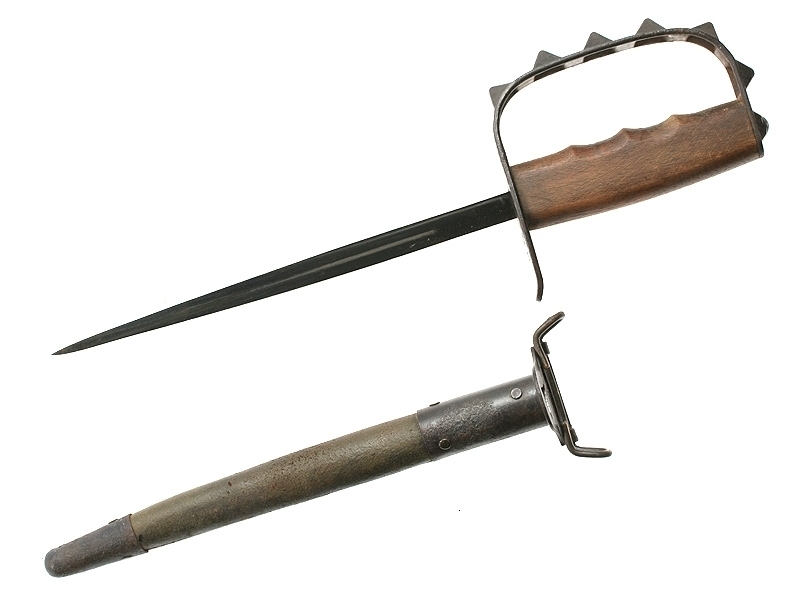 Окопный нож образца 1917 года (также известный как "Model of 1917 Trench Knife"). Клинок трехгранный, равномерно заостренный, сужающийся. Рукоятка из орехового дерева оснащена скобой в качестве гарды, которая жестко соединена с хвостовиком. Благодаря семи граненым выступам рукоятка одновременно является кастетом. Кожаные ножны имеют металлические устье и наконечник. Посредством двойного крюка ножны легко можно было подвесить на ремень Belt M 1910 или Belt M 1903 для пехоты или кавалерии.