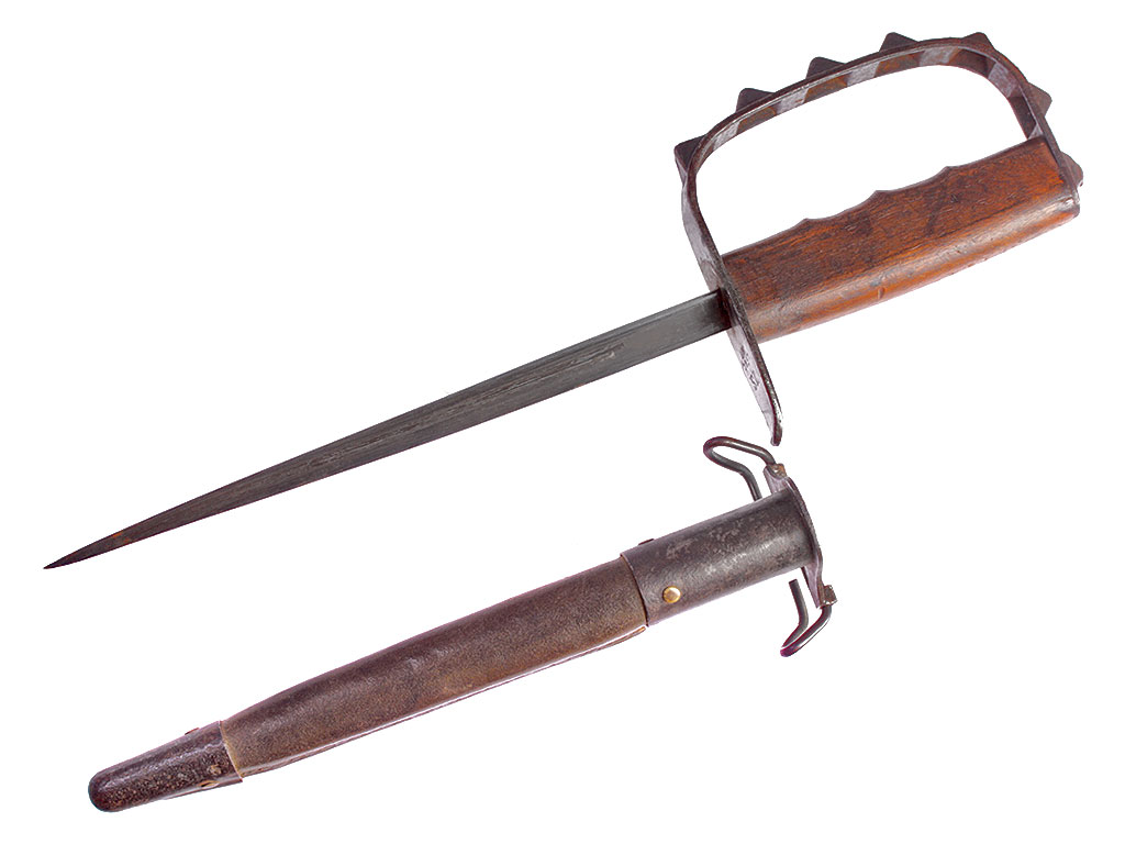 Траншейный нож-стилет образца 1917 года (также известный как "Model of 1917 Trench Knife"). Клинок трехгранный, равномерно заостренный, сужающийся. Рукоятка из орехового дерева оснащена скобой в качестве гарды, которая жестко соединена с хвостовиком. Благодаря семи граненым выступам рукоятка одновременно является кастетом. Кожаные ножны имеют металлические устье и наконечник. Посредством двойного крюка ножны легко можно было подвесить на ремень Belt M 1910 или Belt M 1903 для пехоты или кавалерии.
