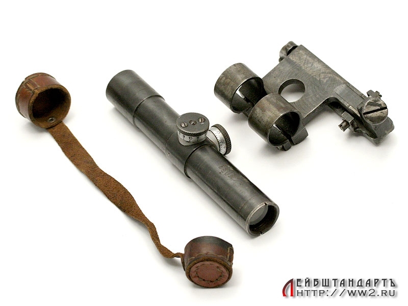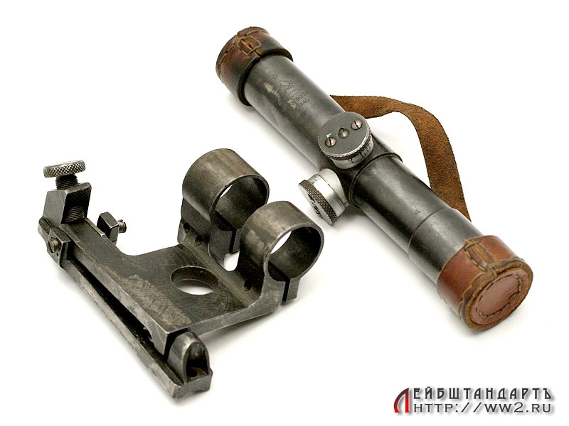Оптический прицел "ПУ" выпуска 1940 года в отличном складском состоянии, с кронштейном. Превосходно сохранилась оптика, корпус в оригинальном воронении. Окуляры закрыты кожаными колпачками.