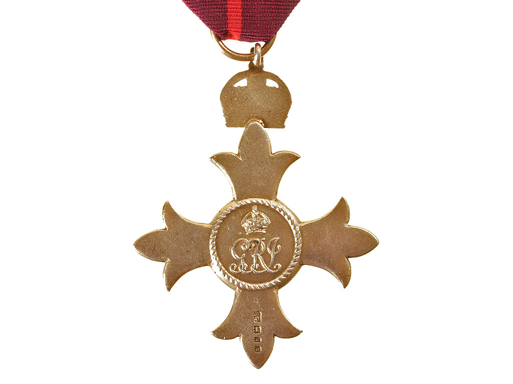 Орден Британской империи 4 класса (The Most Excellent Order of the British Empire). Представляет собой равноконечный серебряный крест, лопасти которого имеют криновидное завершение. В круглом центральном медальоне помещено аллегорическое изображение фигуры, олицетворяющей Британскую империю, медальон обрамлен лентой с девизом Ордена "FOR GOD AND THE EMPIRE" ("За Бога и Империю"). В центральной части реверса в круглом медальоне помещен королевский вензель. Верхняя лопасть креста имеет завершение в виде императорской короны с торцевым отверстием для подвижного кольца.