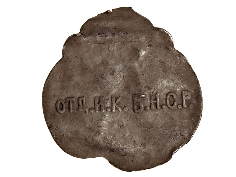 Орден Красной Звезды Бухарской Народной Социалистической Республики 3-й степени, вручавшийся в годы Гражданской войны преимущественно за борьбу с басмачами. Данный знак известен также как бухарская медаль "Защитнику Революции". Знак ордена изготовлен из серебра, пустотелый. Аверс украшен изображением пятиконечной звезды, внизу полукругом идет надпись: "Защитнику революции". На реверсе - рельефная надпись: "От Ц.И.К. Б.Н.С.Р.". Эмаль не сохранилась, ушко отсутствует.
