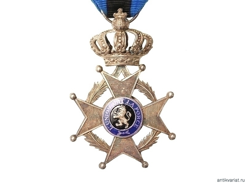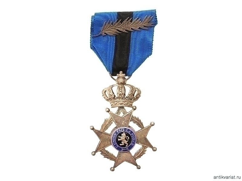 Орден Леопольда 2-го класса. Серебрение, эмаль. На оригинальной шелковой ленте с прикрепленной лавровой ветвью.