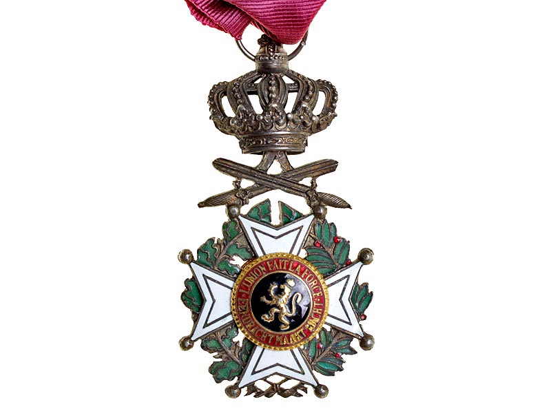 Орден Леопольда I с мечами. Серебро, эмаль, золочение. На оригинальной шелковой ленте.
