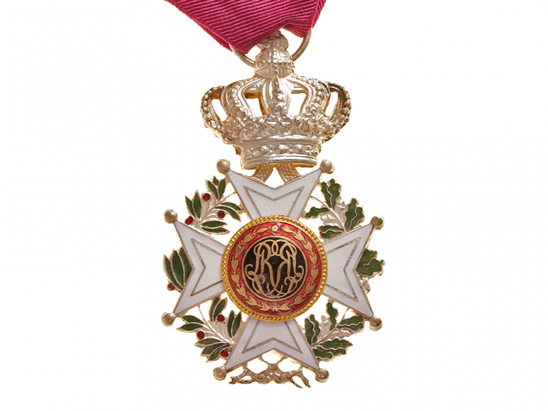 Орден Леопольда I без мечей. Серебро, золочение, эмаль. На оригинальной шелковой ленте.