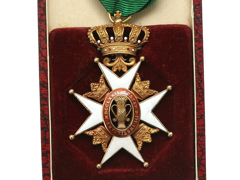 Орден Васы в оригинальном футляре. Золото, эмаль, на оригинальной ленте. Отличное состояние.
