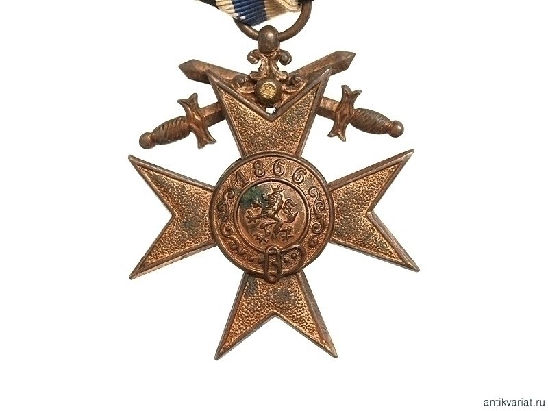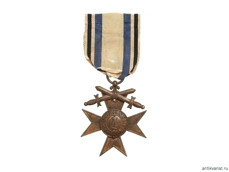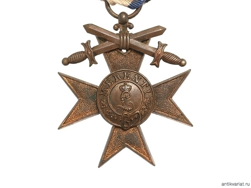 Медь, бронзирование. В центре знака помещен девиз – MERENTI (достойному). Орден Военных заслуг шести классов был учрежден 19 июля 1866 г. Людвигом II.