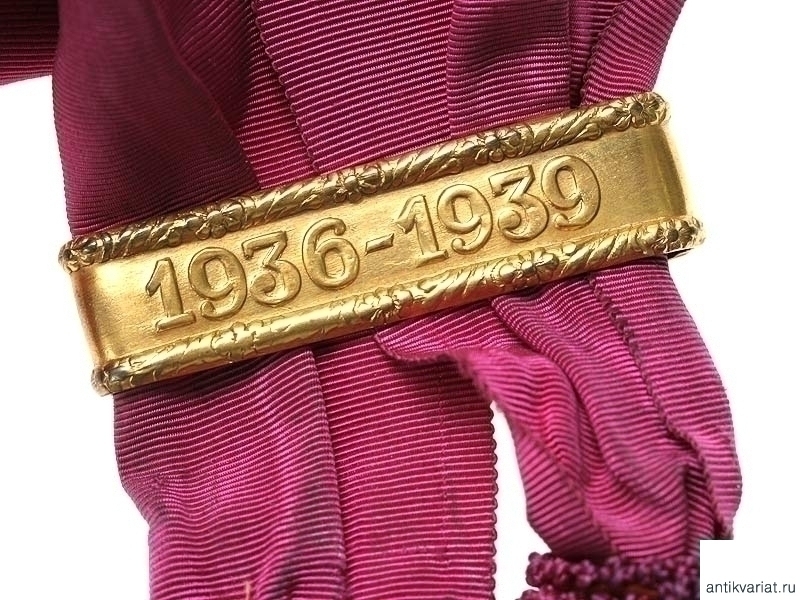 Плечевая орденская лента ордена Альфонсо Х с позолоченной планкой с датой "1936 - 1939". Очень хорошее состояние.