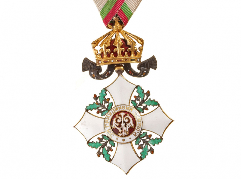 Крест ордена "За гражданские заслуги" 5 степени (эмиссия Фердинанда I). Серебро, золочение, эмаль. На оригинальной колодке.