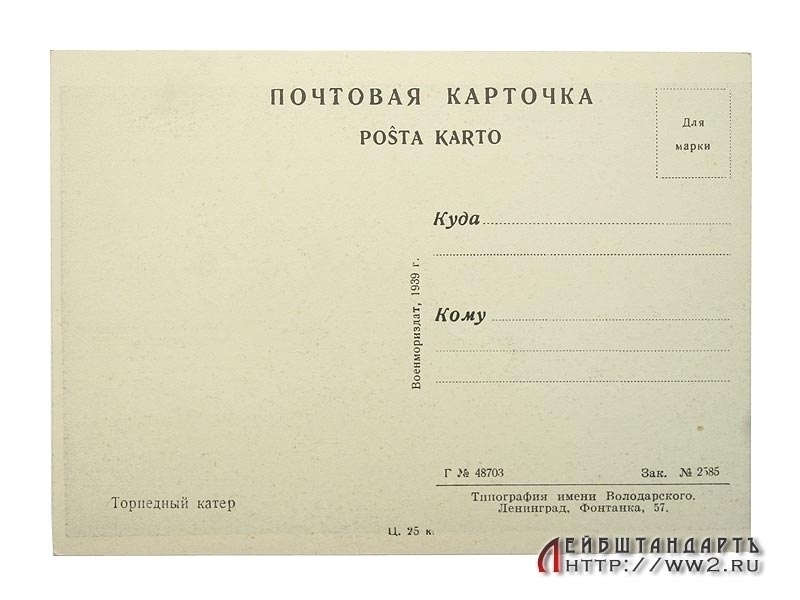 Открытка "Торпедный катер", выпущенная Военмориздатом в 1939 году. Отличное состояние.