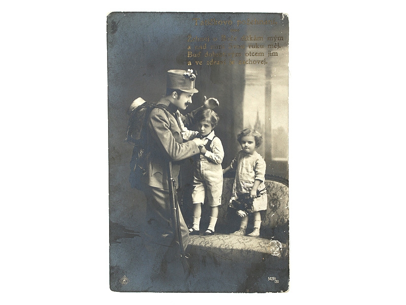Открытка, изображающая чешского солдата с детьми. Оборотная сторона чистая, очень хорошее состояние.