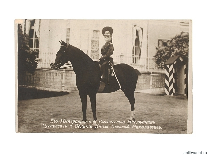 Открытка с портретом Наследника Цесаревича Алексея Николаевича на коне, начало ХХ века.